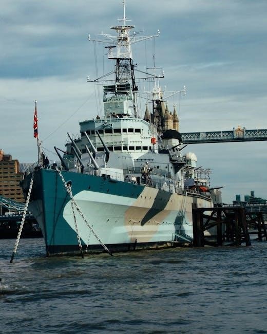 While primarily associated with merchant shipping, naval vessels often handle supplies and equipment requiring cargo-specific terminology. PDF resources for maritime English provide essential vocabulary for understanding stowage plans, lashing procedures, and cargo securing methods. Terms like “break bulk,” “dunnage,” “bill of lading,” and “IMDG code” become relevant when receiving provisions or humanitarian aid.